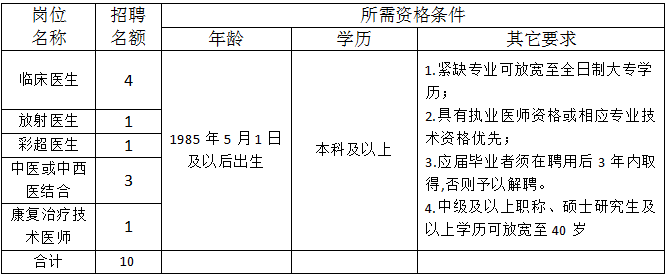 2020年自主招聘醫(yī)生崗位和條件要求一覽表