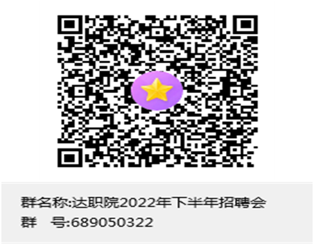 請參會單位12月11日前輸入群號689050322或掃碼加入達(dá)職院雙選會QQ群,填報參會單位相關(guān)信息,并及時了解雙選會相關(guān)動態(tài)。