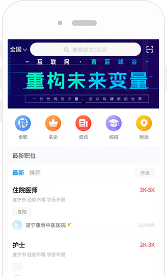 | 我們擁有海量職位庫和簡(jiǎn)歷庫;為您的求職和招聘提供強(qiáng)大數(shù)據(jù)資源 |