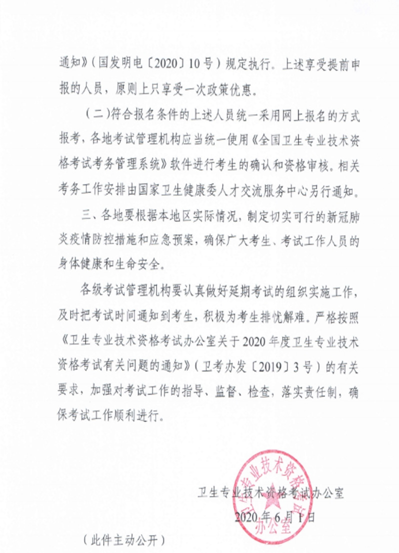 關(guān)于做好2020年度衛(wèi)生專業(yè)技術(shù)資格延期考試有關(guān)問題的通知