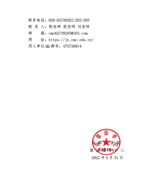 > 成都醫(yī)學(xué)院2022屆畢業(yè)生與用人單位畢業(yè)季雙選會(huì)邀請函