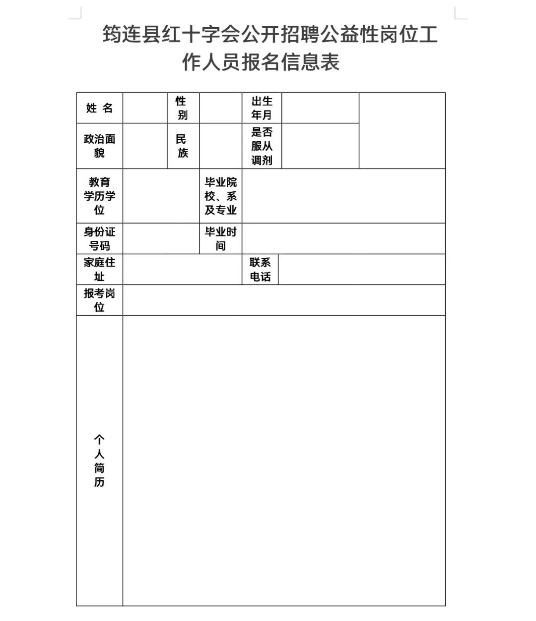 附件:筠連縣紅十字公開招聘公益性崗位工作人員報名信息表