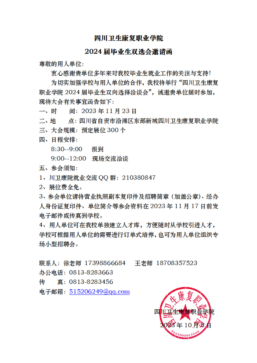 > 四川衛(wèi)生康復(fù)職業(yè)學(xué)院2024屆畢業(yè)生雙選會邀請函