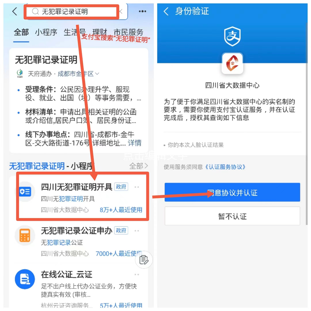 登錄支付寶搜索“無犯罪記錄證明”,以四川省為例: