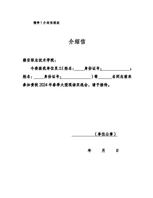 > 雅安職業(yè)技術(shù)學(xué)院2024 年春季大型現(xiàn)場(chǎng)雙選會(huì)邀請(qǐng)函