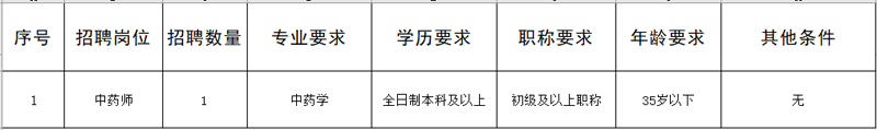 根據(jù)醫(yī)院工作需要,現(xiàn)面向社會公開招聘中藥師1人,具體要求公告如下: