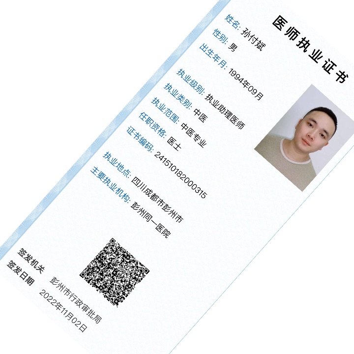 工作描述:目前在中醫(yī)康復(fù)科主要從事康復(fù)理療工作(針灸、推拿等),疫情期間積極參與核酸采集工作,主動(dòng)申請(qǐng)加入抗疫支援任務(wù),今年通過(guò)中醫(yī)助理醫(yī)師考試,已取得執(zhí)業(yè)資格證書(shū)。