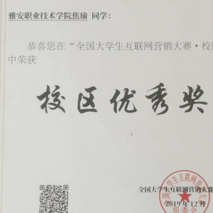 在校期間參加各種社團(tuán)活動(dòng),還擔(dān)任了愛跑協(xié)會(huì)的宣傳部部長(zhǎng),在2020年暑假社會(huì)實(shí)踐活動(dòng)中榮獲三等獎(jiǎng),“全國(guó)大學(xué)生互聯(lián)網(wǎng)營(yíng)銷大賽校區(qū)賽”中榮獲校區(qū)優(yōu)秀獎(jiǎng)。